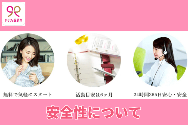 安全性について: ゼクシィ縁結びは24/365のサービスパトロールや本人確認など、高い安全性を確保。個人情報の厳重な保護や匿名表示により、利用者は安心して婚活に集中できます。